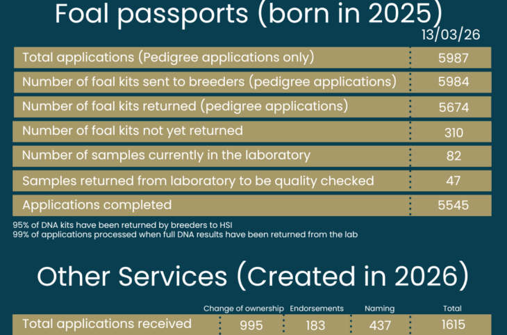 HSI has received 5987 applications and issued 5545 completed applications for foals born in 2025. 5984 pedigree applications have had…