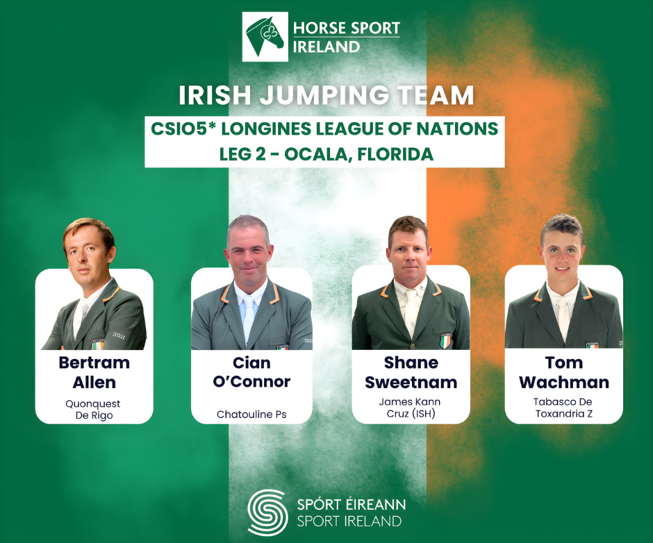 Jessica Kurten has named the combinations who will represent Ireland at the Longines League of Nations (LLN) second leg in Ocala, Florida on March 21st.