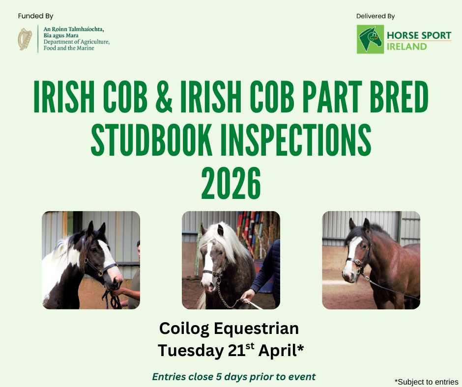 The Irish Cob and Irish Part Bred Cob Studbook Inspections are funded by the Department of Agriculture, Food and the Marine under the Equine Technical Support Fund.