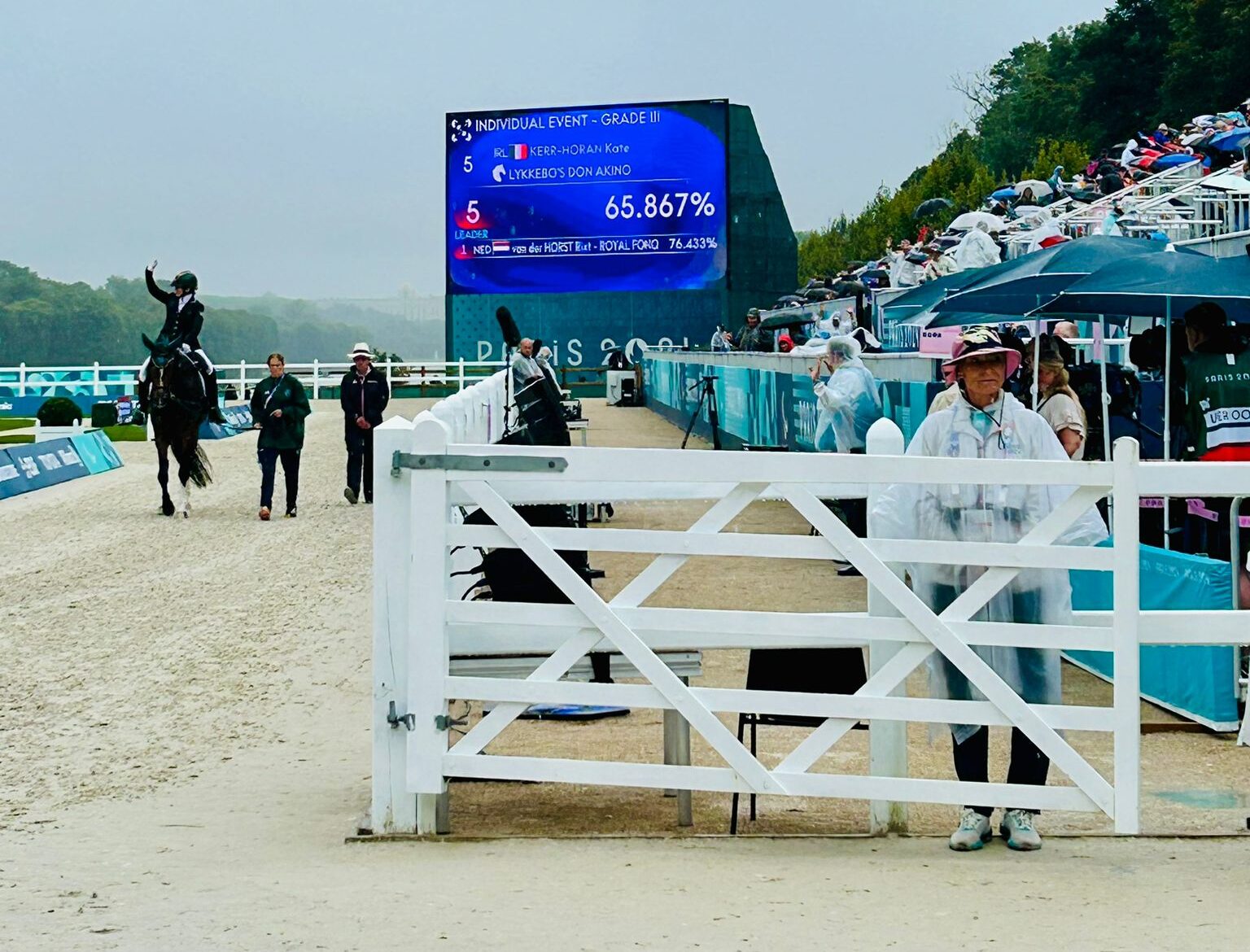 Kerr-Horan was first into the arena on board Lykkebo’s Don Akino, with the combination scoring 65.867% at a rain-soaked Chateua De Versailles.