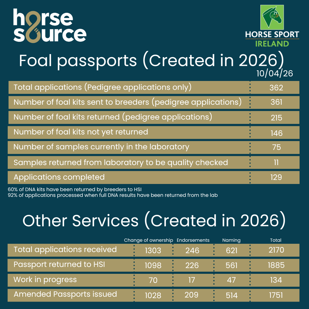Horse Sport Ireland (HSI) has issued an update on the number of passport applications processed during the week ending December 6th, through Horse Source.